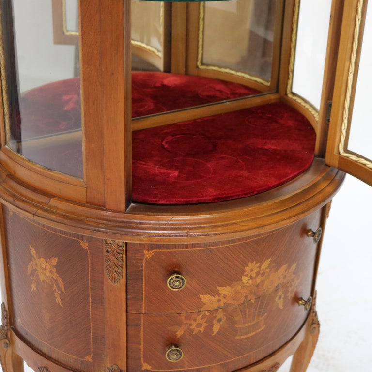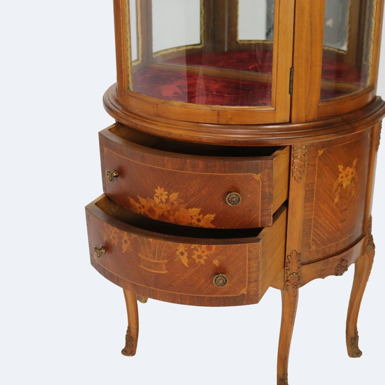 - Antique French Louis XV Mahogany & Satinwood Vitrine with Floral Marquetry C1890