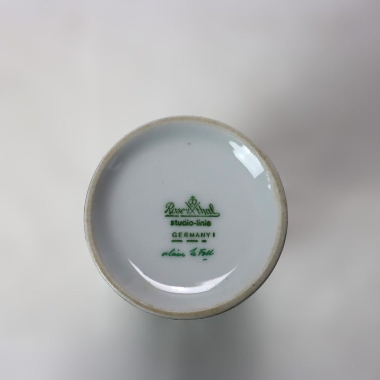 - This antique vase, crafted by the renowned German manufacturer Rosenthal, dates to circa 1930. It features a striking hand-painted floral design with intricate gilt detailing, showcasing the artistry and craftsmanship typical of Rosenthal pieces from this era.