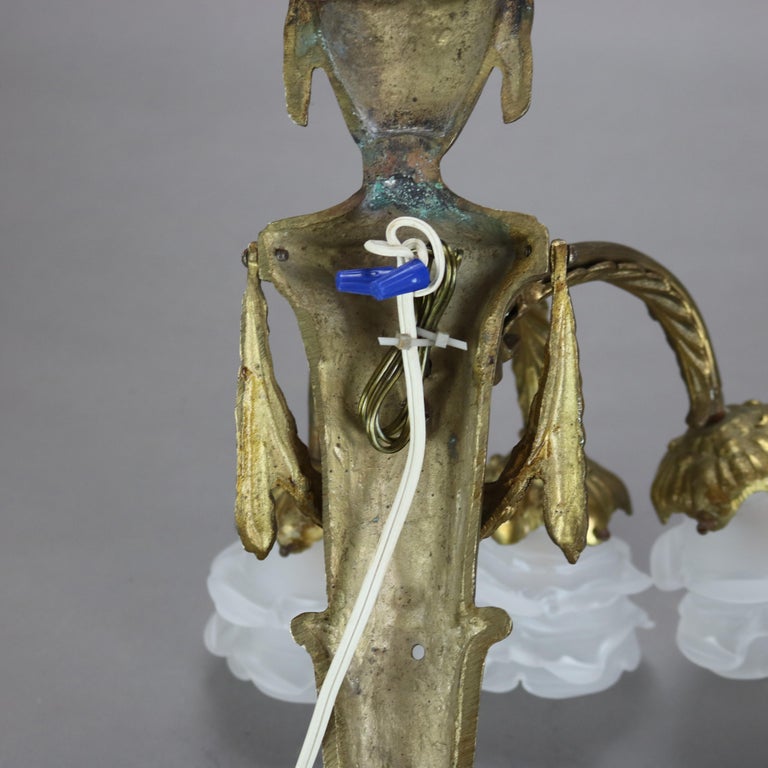 - Antique Gilt Bronze Figural Three-Light Wall Sconce with Persian Mask C1920