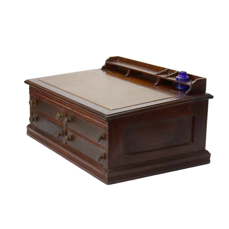 - Antique J & P Coats Oak Four-Drawer Lift-Top Spool Cabinet Signed C1890