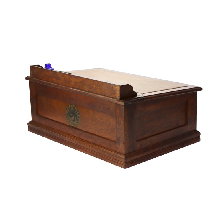 Antique J & P Coats Oak Four-Drawer Lift-Top Spool Cabinet Signed C1890