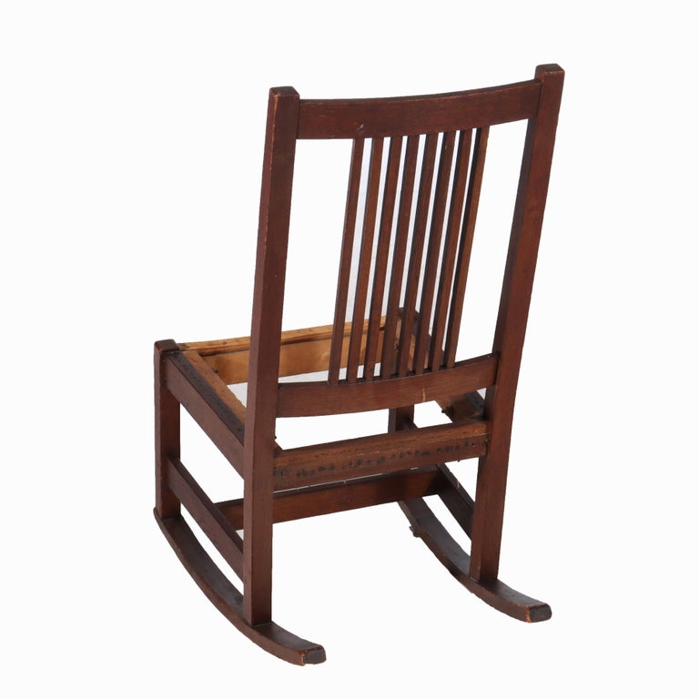 - Antique L & JG Stickley Oak Spindled Ladies Chair C1910