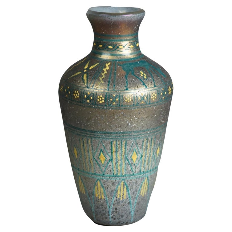 - An antique Mount Washington Egyptian Revival figural vase offers art glass with hand painted tribal design and antelope figure, c1900