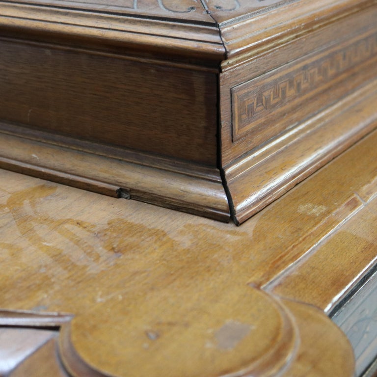 Antique Renaissance Revival Carved Walnut & Ormolu Credenza With Marquetry c1880