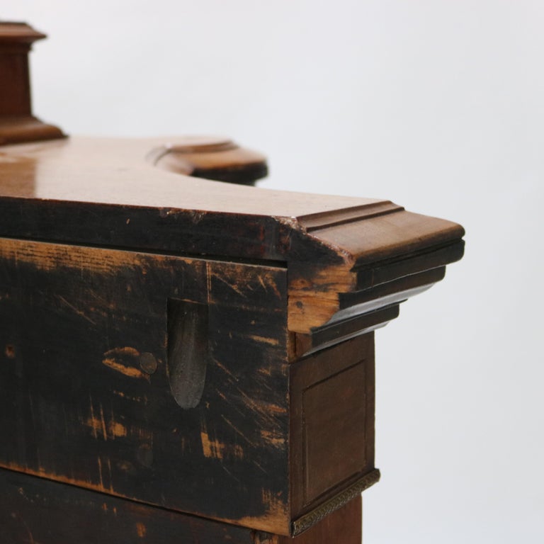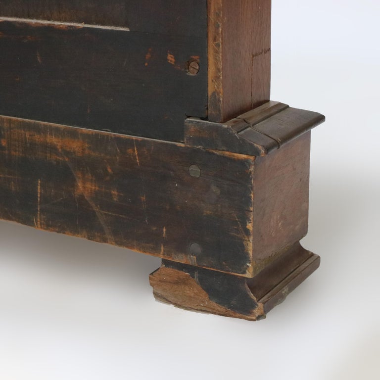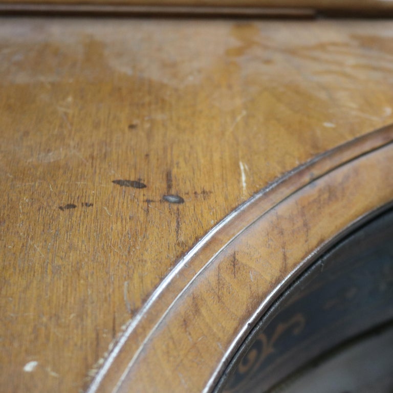 - Overall very good condition, tight and sturdy with veneer warp, finish discoloration and dings; as photographed. Wear consistent with age and use.