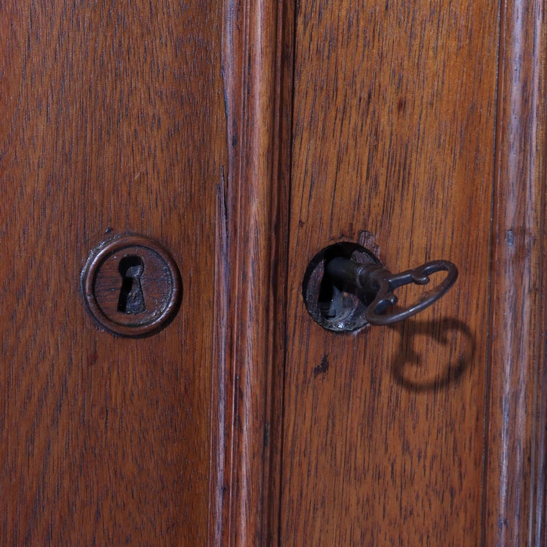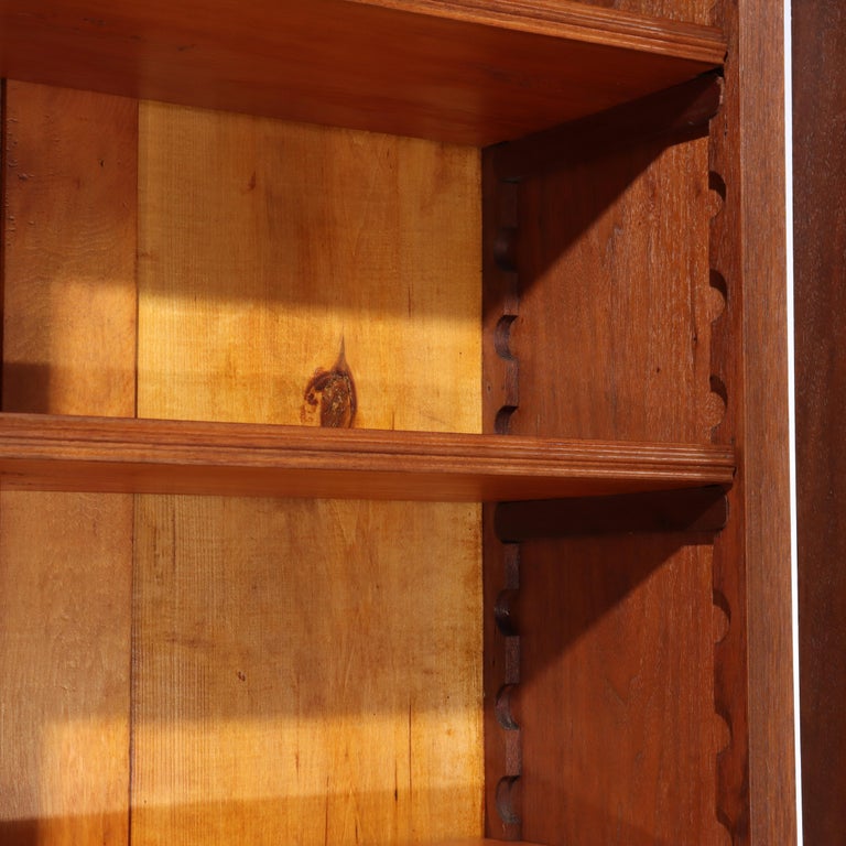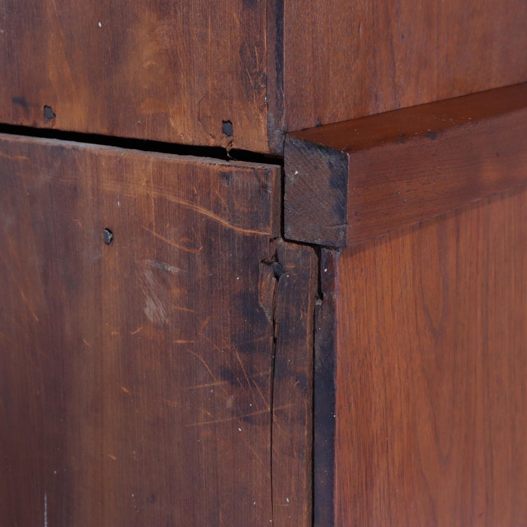- This antique secretary with bookcase is a fine example of Renaissance Revival Victorian furniture, crafted around 1880. Made from rich walnut and burl, it features intricate carvings and a beautifully arched pediment. The upper section includes a glass-fronted bookcase with adjustable shelves, while the lower section offers ample storage with three drawers.
