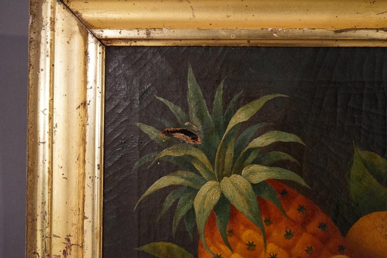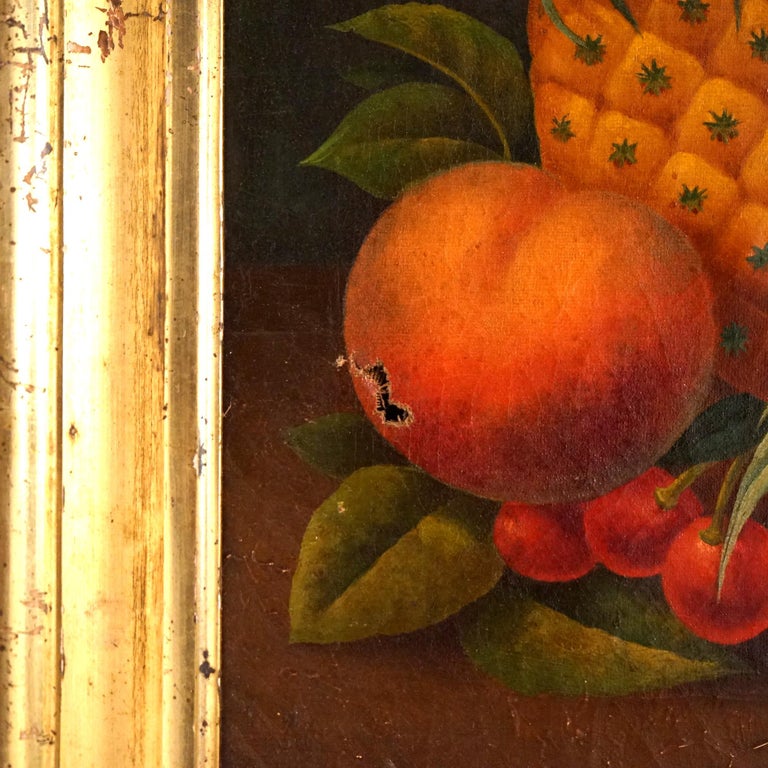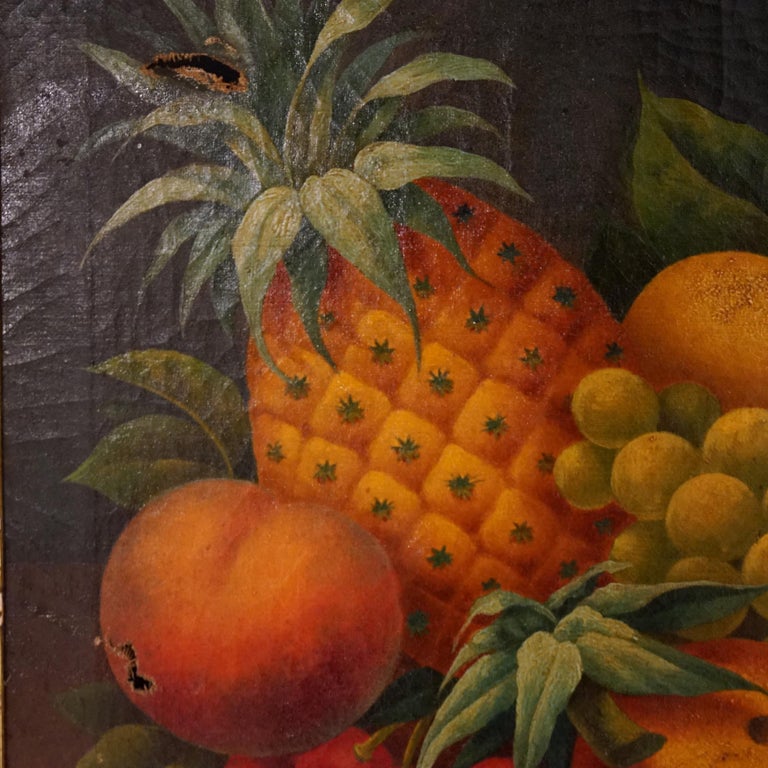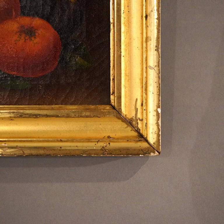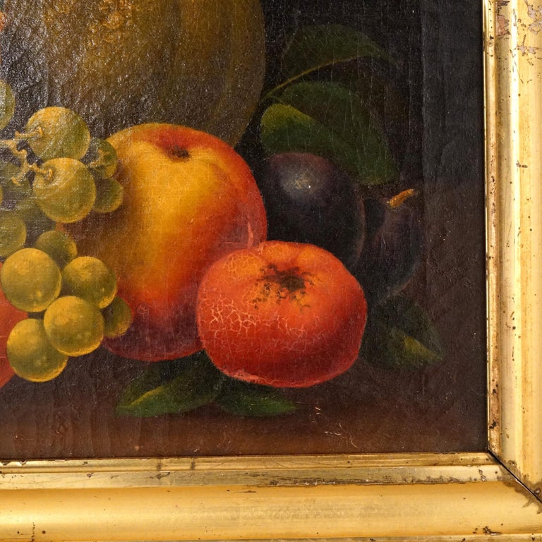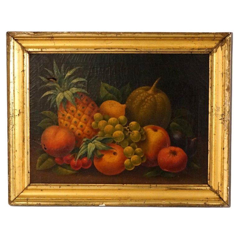 - Antique Folk Art Fruit Still Life Oil On Canvas Painting in the Manner of Severin Rosen, Giltwood Framed, C1830