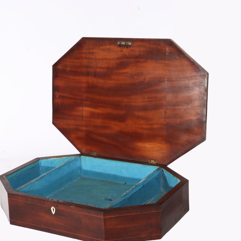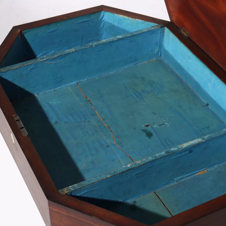 - Antique Sheraton Federal Mahogany Spider Leg Lift-Top Sewing Stand c1820