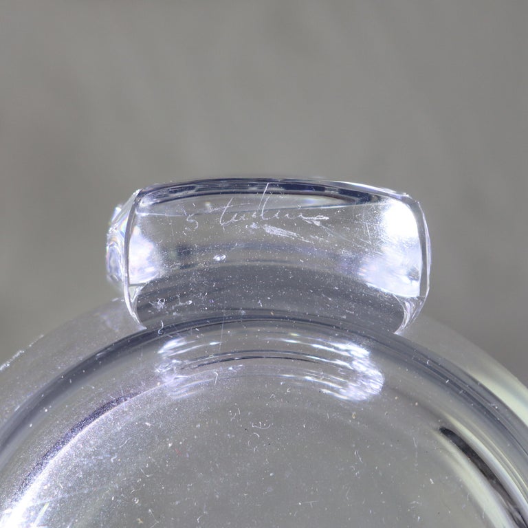 - A fine example of Steuben's mid-century modern art glass, this vessel dates to circa 1930. Known for its clarity and elegance, the piece features a simple yet sophisticated design with subtle decorative elements at the base. Steuben glass is renowned for its quality and craftsmanship.