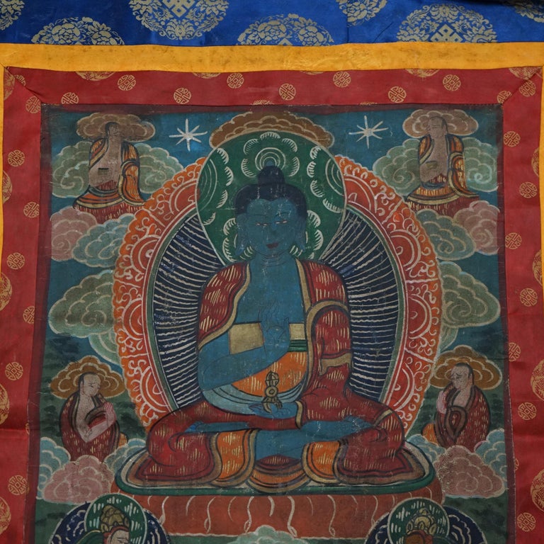 - Antique Tibetan Hand Painted Silk and Canvas Thangka with Figures C1920