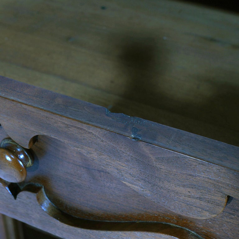 - An antique country store sideboard or jelly cupboard offers walnut construction with shaped backsplash over double drawers with shaped panels over double door cabinet opening to shelved interior raised on bracket feet, 19th century