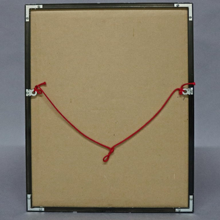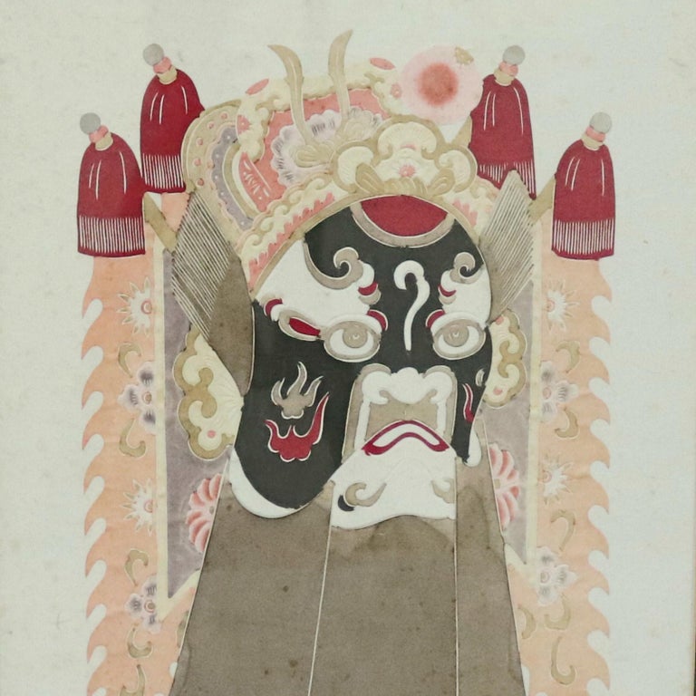 •A Chinese framed print offers mixed media depiction of ceremonial deity mask, 20th century