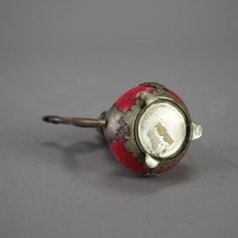 - Chinese Porcelain Miniature Teapot with Silver Overlay 20thC