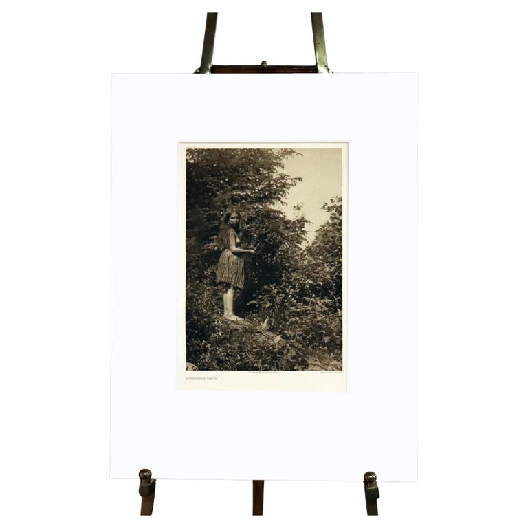 - This is an antique print titled 'A Primitive Quinalt' by Edward S. Curtis, a renowned photographer known for his extensive work documenting Native American cultures. The print, dated circa 1912, captures a Native American figure amidst natural surroundings, showcasing Curtis's signature style of combining ethnographic detail with artistic composition.