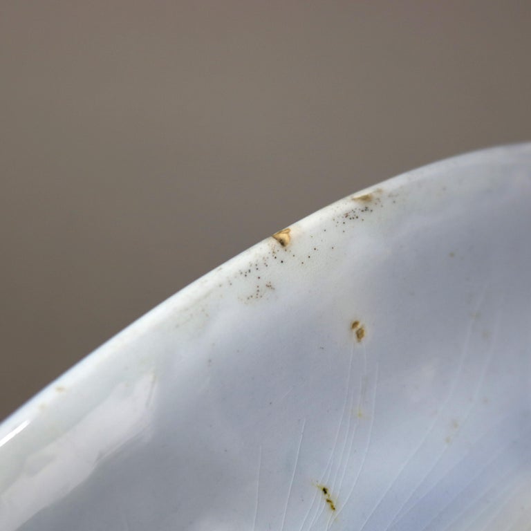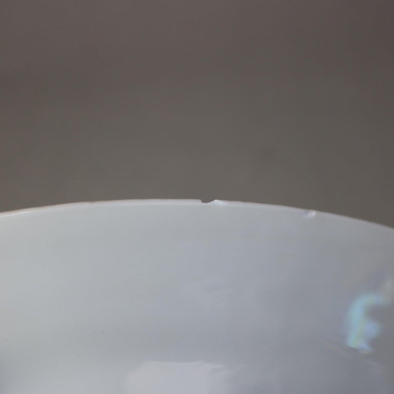 - Overall very good condition; as photographed. Blue rim has no issues, White large has chipped rim, Large blue rim has craquelure, Beige has scrapes. Wear consistent with age and use.