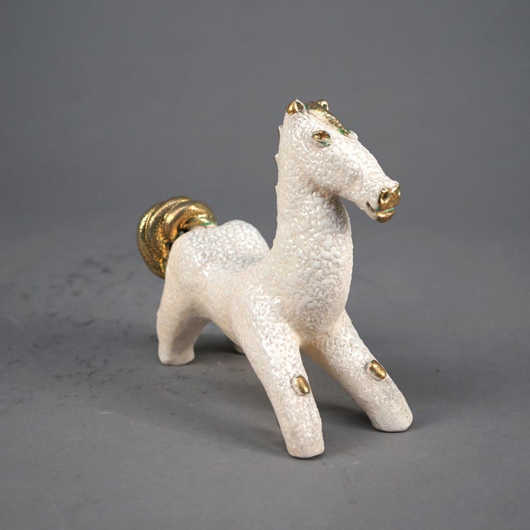 - Mid Century Modern French Sevres Figural Pottery Set by Colette Gueden with Horses and Center Bowl