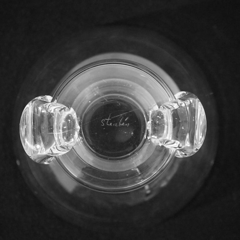 - Mid Century Modern Steuben Art Glass Crystal Bowl with Pinched Base, Signed, 20thC