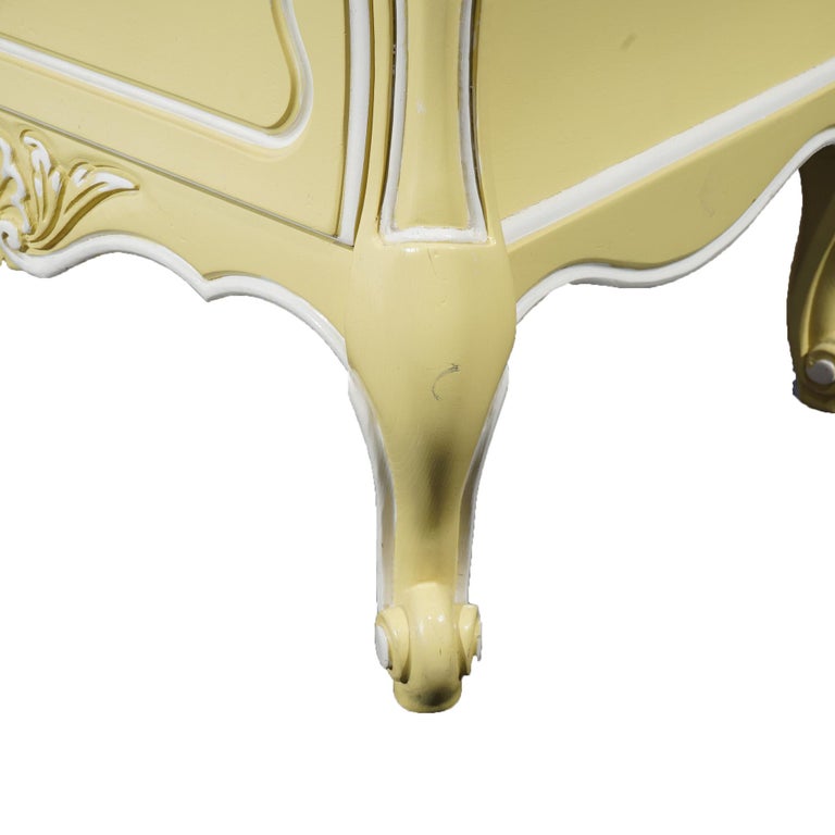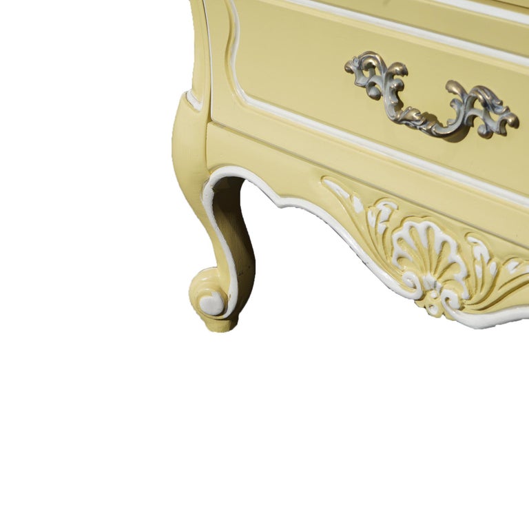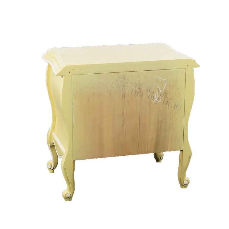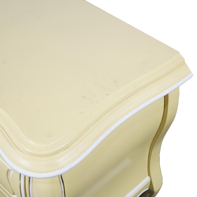 - Pair French Provincial Style Two-Drawer Bombe End Stands by Hickory with Foliate Carved Shaped Skirt and Cabriole Legs, 20thC