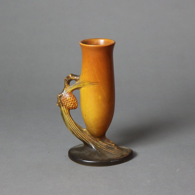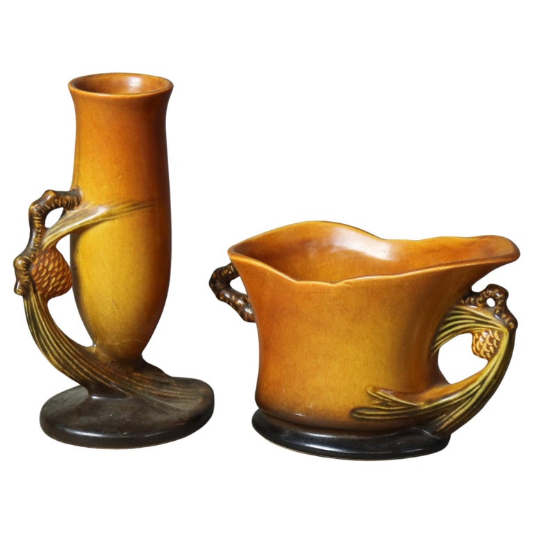 - Two Brown Roseville Art Pottery with Pinecone Pattern Mid 20thC