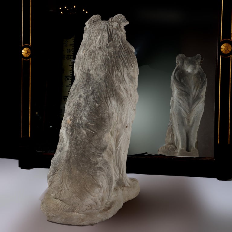 - A vintage life-sized garden statue of a Collie, crafted from cast hardstone around 1950. This piece captures the elegance and grace of the Collie breed with detailed fur texture and a lifelike pose.